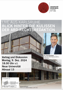 Heidelberg, 25.11.2024 - ARD-Rechtsexperte Dr. Frank Bräutigam gewährt am Montag, den 9.12.2024, auf Einladung von PD Dr. K. Weilert in den Räumen der Neuen Universität Heidelberg (HS13) einen Blick hinter die Kulissen seiner Arbeit als Journalist in Karlsruhe. Wie entsteht ein Beitrag für die Tagesschau? Wie läuft eine Live-Schalte ab? Kann man rechtliche Themen auch auf Instagram und TikTok abbilden? Die sachkundige Information der Bevölkerung über neue Rechtswicklungen durch die Rechtsprechung ist von zentraler Bedeutung für die Demokratie. Sie ermöglicht ein breites Rechtsverständnis und trägt dazu bei, den hohen Wert der Rechtsstaatlichkeit zu vermitteln.